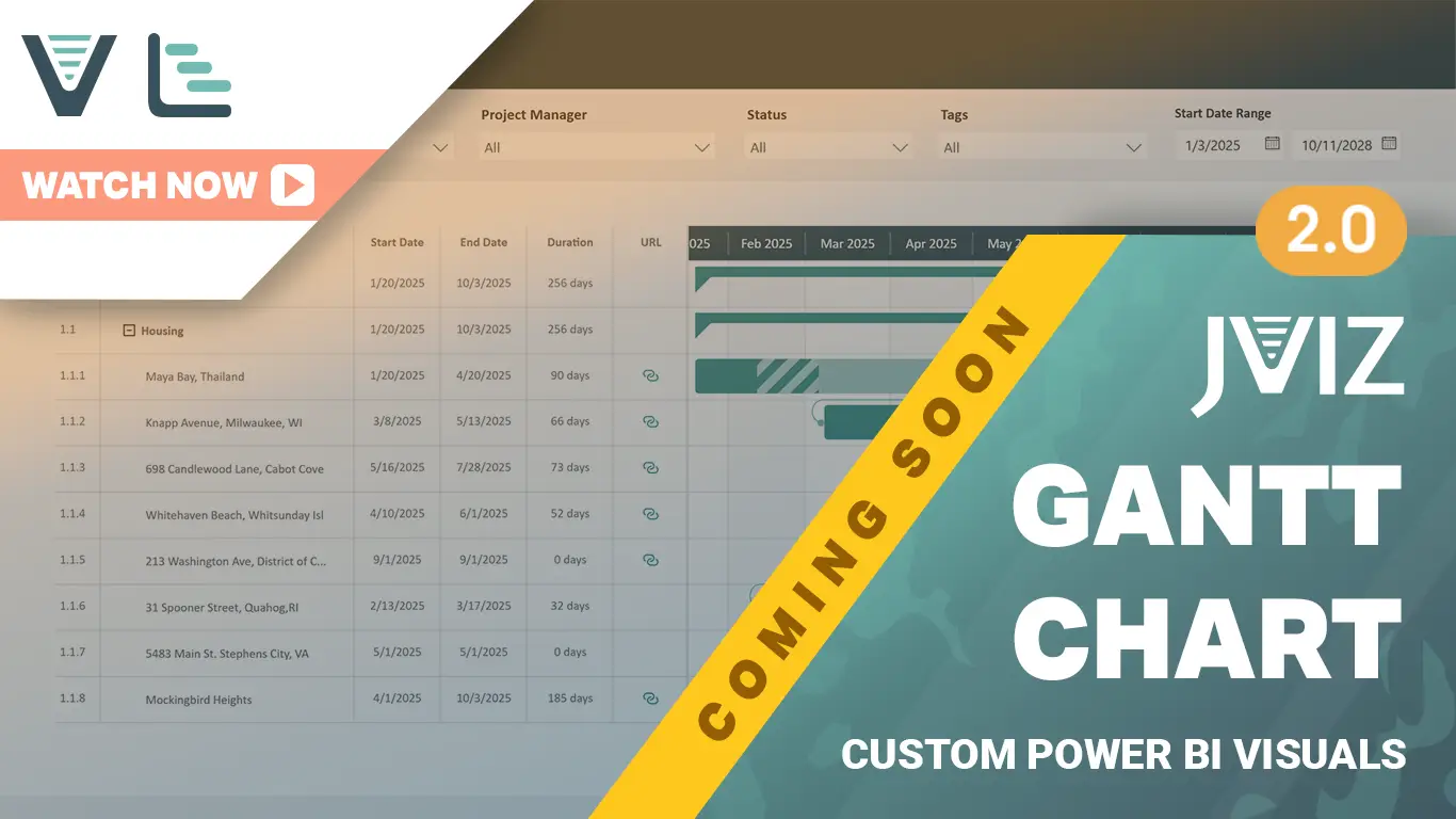 See JVIZ in action by watching a quick the demo of key features and capabilities. From interactive hierarchies, responsive timelines, dynamic task icons, milestones, and dependency tracking, finally, the long awaited reboot to JVIZ Gantt Chart is here and coming to MS AppSource soon. This JVIZ Gantt Chart 2.0 also features our new affordable pricing model so all organizations, small and large, can create compelling Gantt Charts.
